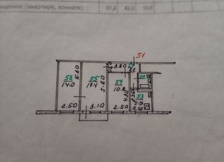 Продам трехкомнатную квартиру, 62.7 м2, Раздольная улица, 68
