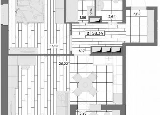 Продается двухкомнатная квартира, 56.8 м2