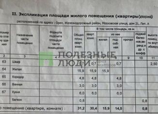 Продается однокомнатная квартира, 31.2 м2, Московская улица, 21
