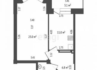 Общая площадь: 23.3 м2