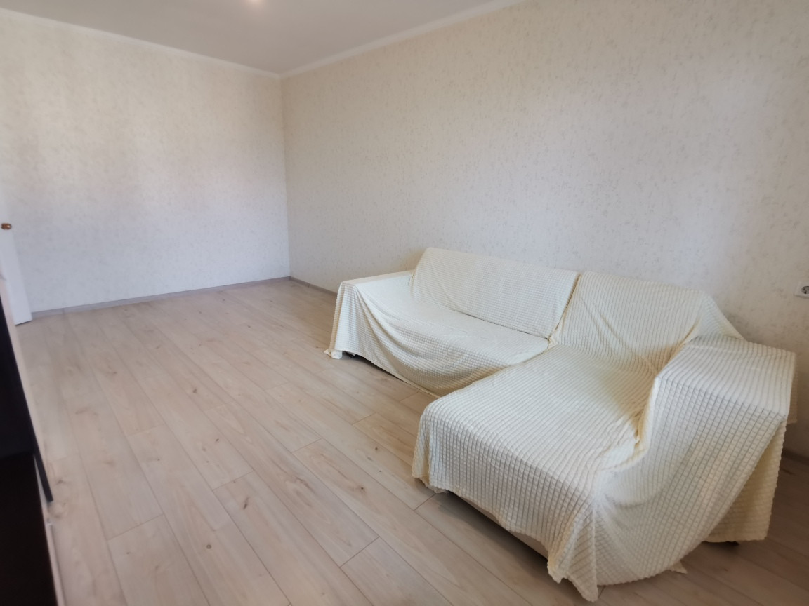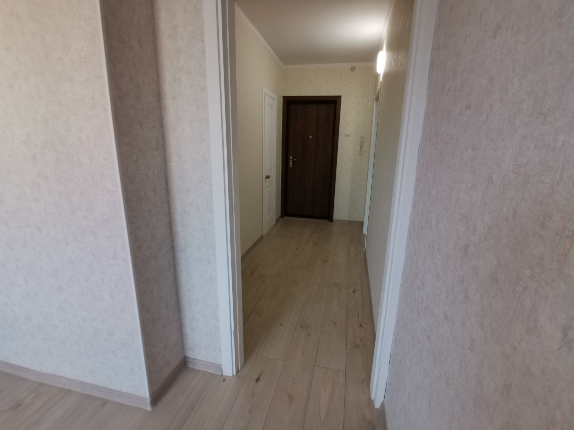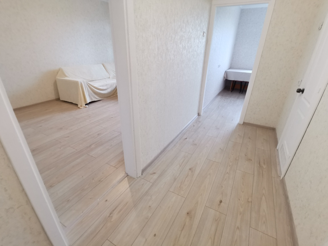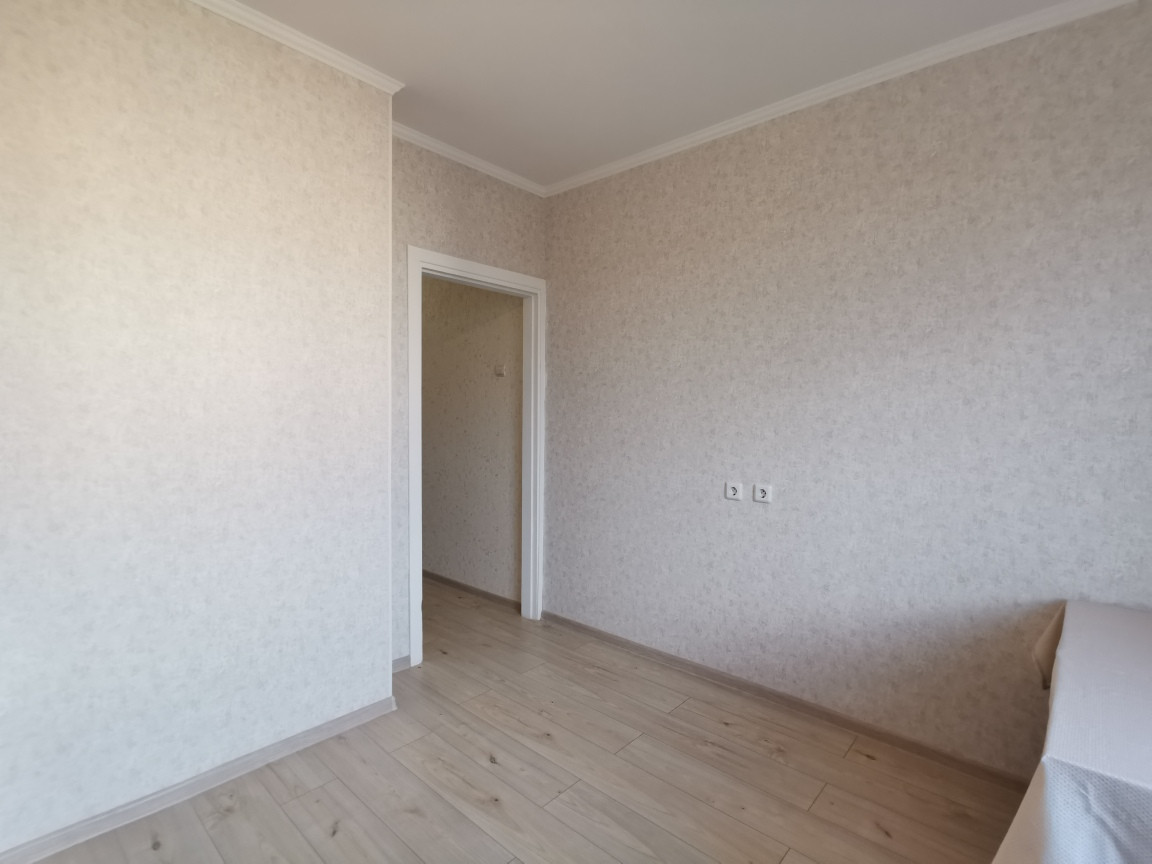 *Ламинат светлый дуб. Стены выровнены, нейтральные обои под фактурную штукатурку.