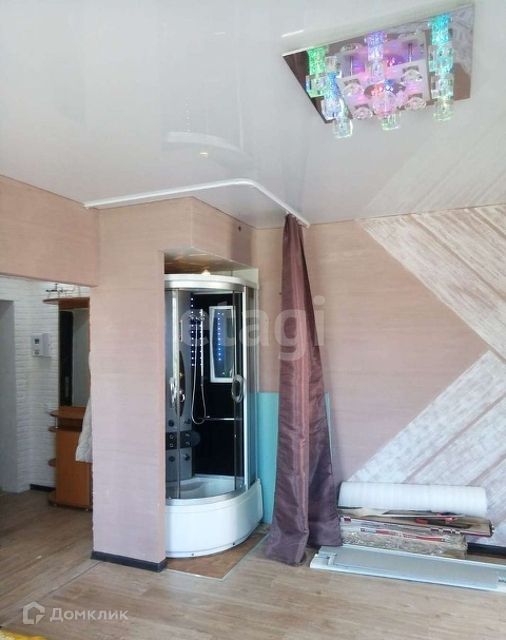 Стены сделаны под белый кирпич, что очень гармонирует с натяжными потолками. Также в квартире имеется плита на кухне и некоторая мебель необходимая для проживания. Вместе с квартирой (входит в стоимость) Вы получите участок 4 сотки, с теплицами, небольшим домиком и замечательный сарай с погребом под картошку и соленья.