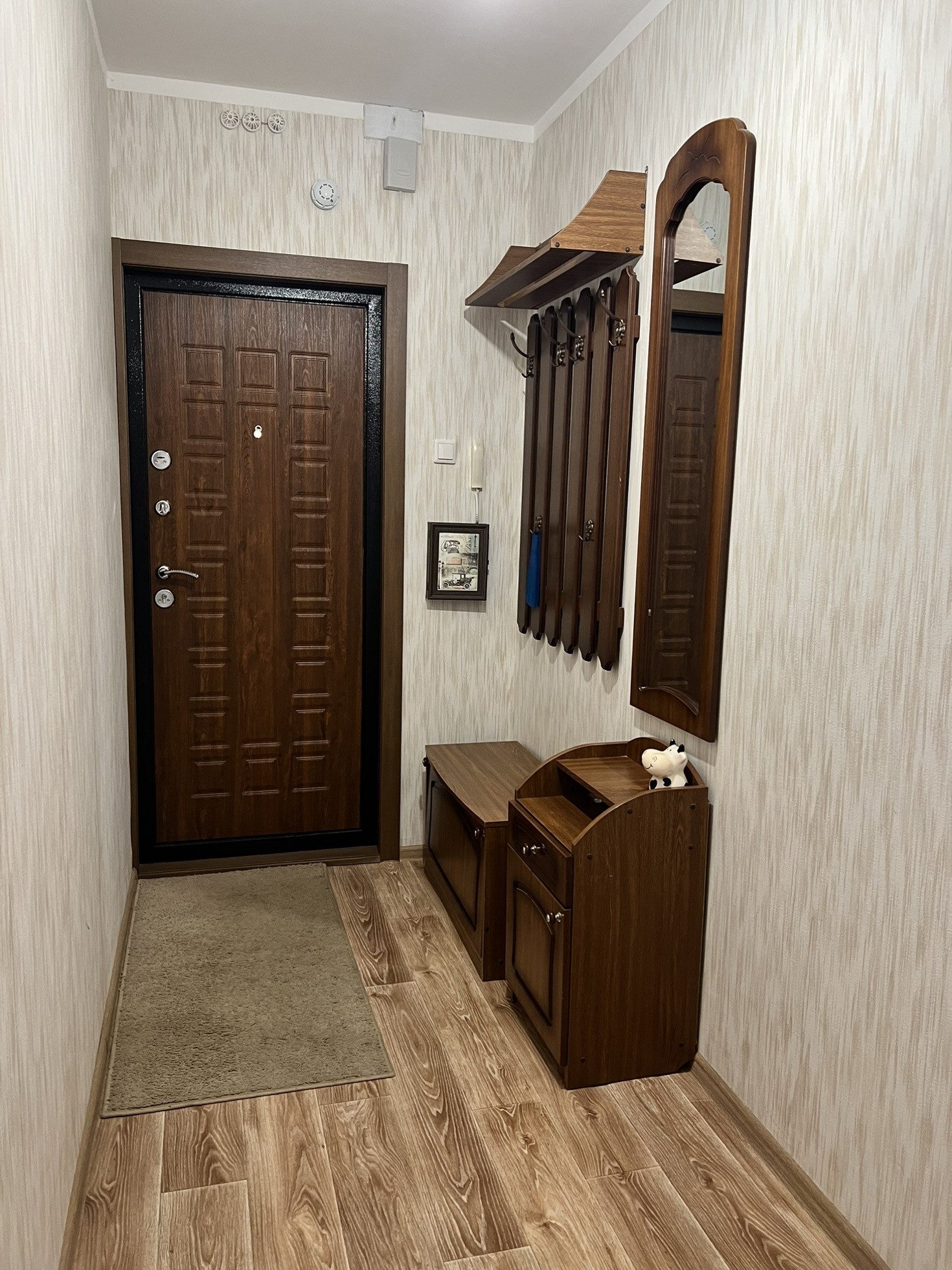 Просторная прихожая с гарнитуром.