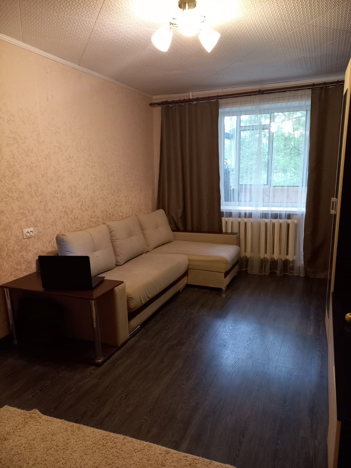 в квартире произведён ремонт, ламинат, замена окон на ПВХ, лоджия застеклена, замена сантехники труб водоснабжения, счетчики