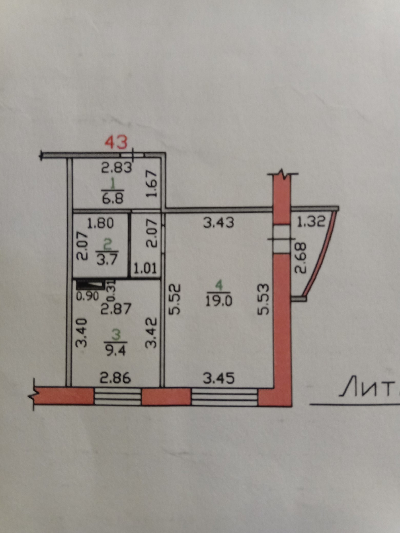 Общая площадь 38.9 м2