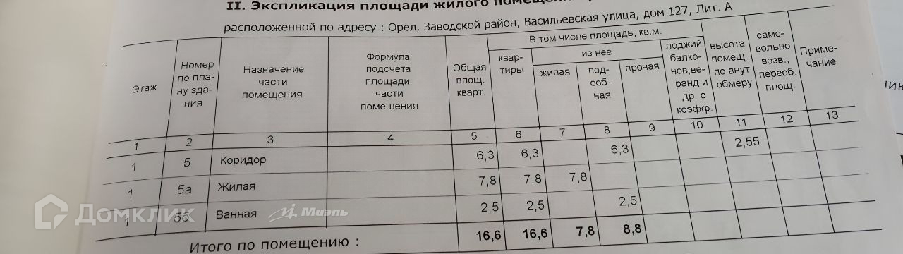 1-комнатная квартира, 16.6 м2, этаж 1 / 9, на продажу в Орле, Васильевская улица, 127