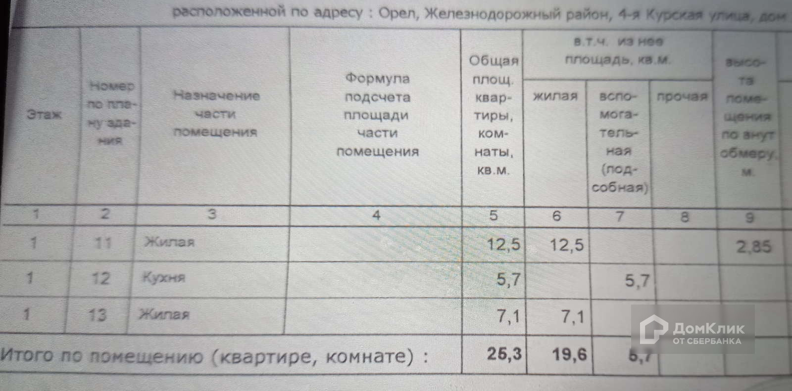2-комнатная квартира, 26 м2, этаж 1 / 2, на продажу в Орле, 4-я Курская улица, 23