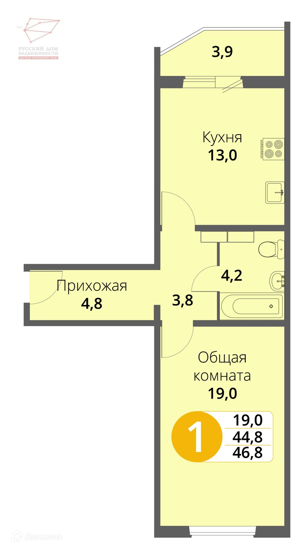 Общая площадь 44.8 м2
