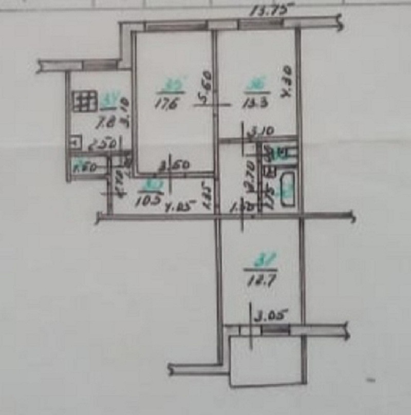 Жилая площадь 43.6 м2