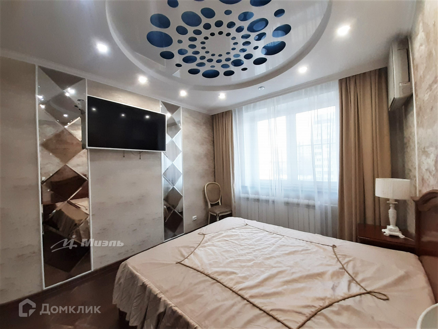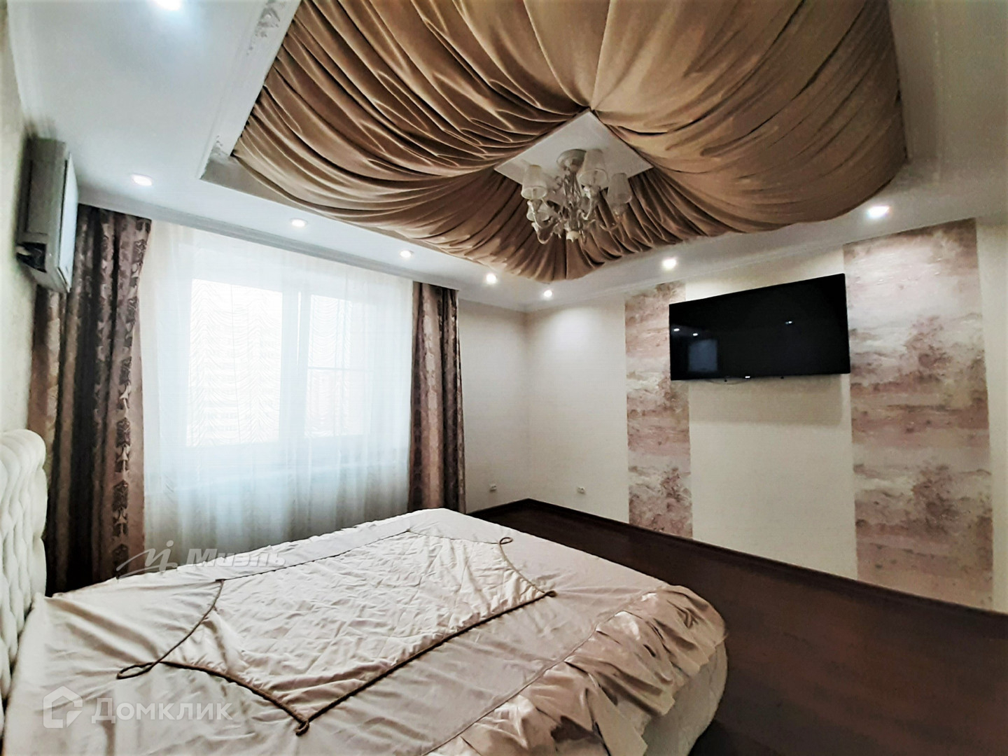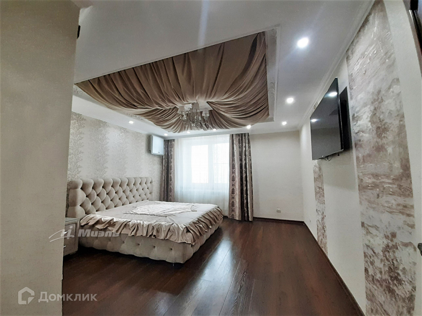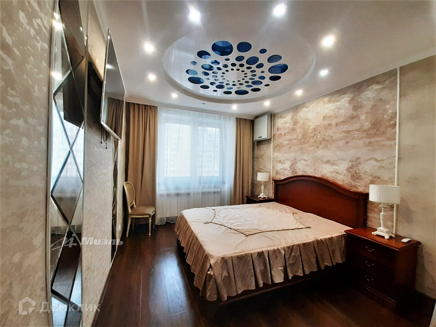 В квартире сделан дизайнерский ремонт из качественных материалов: в комнатах, коридоре и частично на кухне на пол уложен ламинат из натурального дерева, в холле, частично на кухне, ванной комнате и туалете - керамогранит, стены - керамическая плитка. Во всех помещениях смонтированы двухуровневые потолки в которые встроенные точечные светильники: в спальне из гипсокартона и ткани, во второй - из гипсокартона и натяжного глянцевого полотна, в холле и кухне - натяжного и матового.