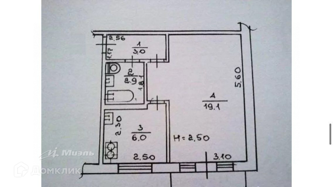 Жилая площадь 19.1 м2