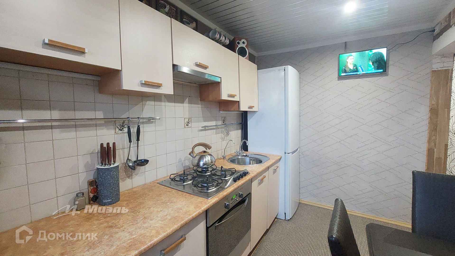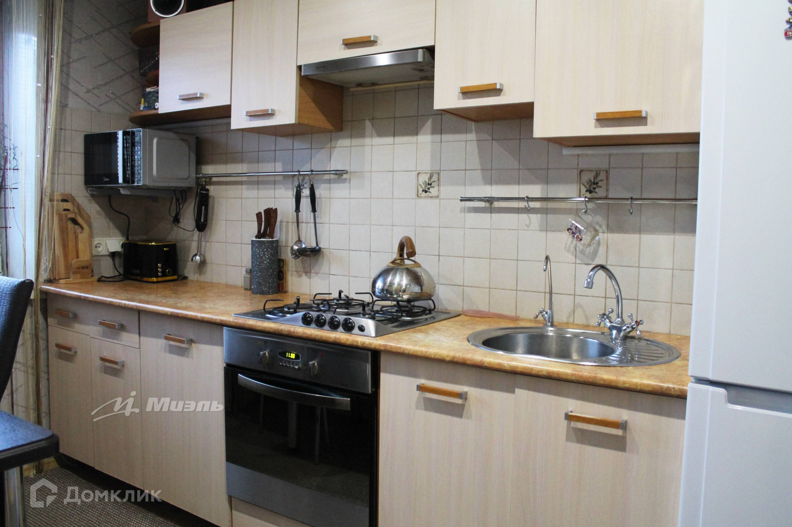 В квартире остается: кухонный гарнитур, в детской - встроенный стол компьютерный со шкафом, в зале - стенка, в коридоре - 2 шкафа, жалюзи, духовой шкаф, варочная панель, вытяжка, бойлер, люстра в зале.