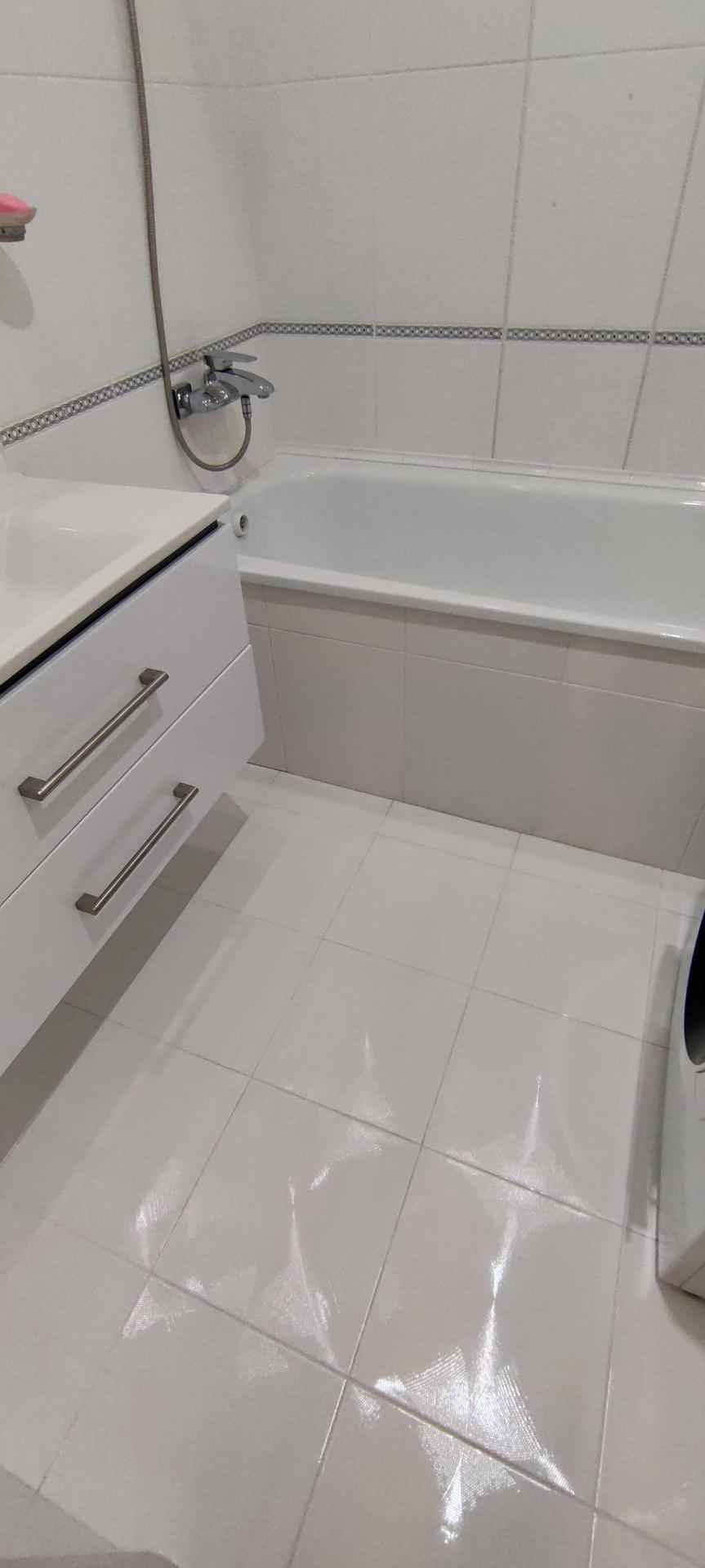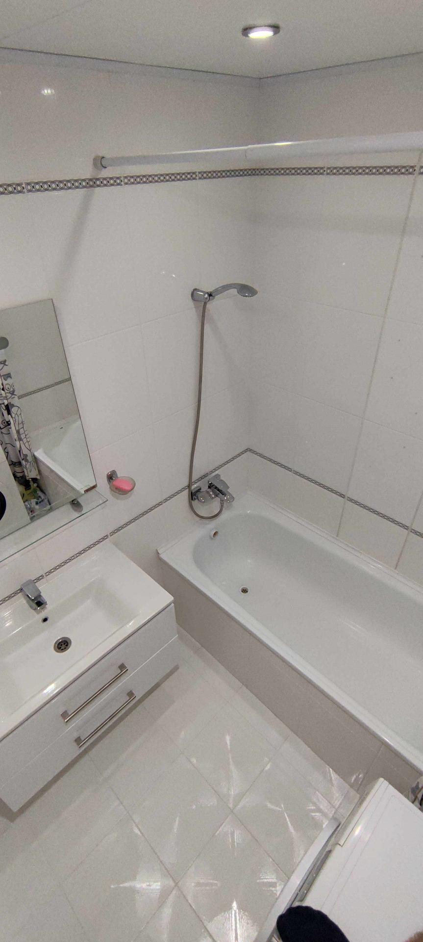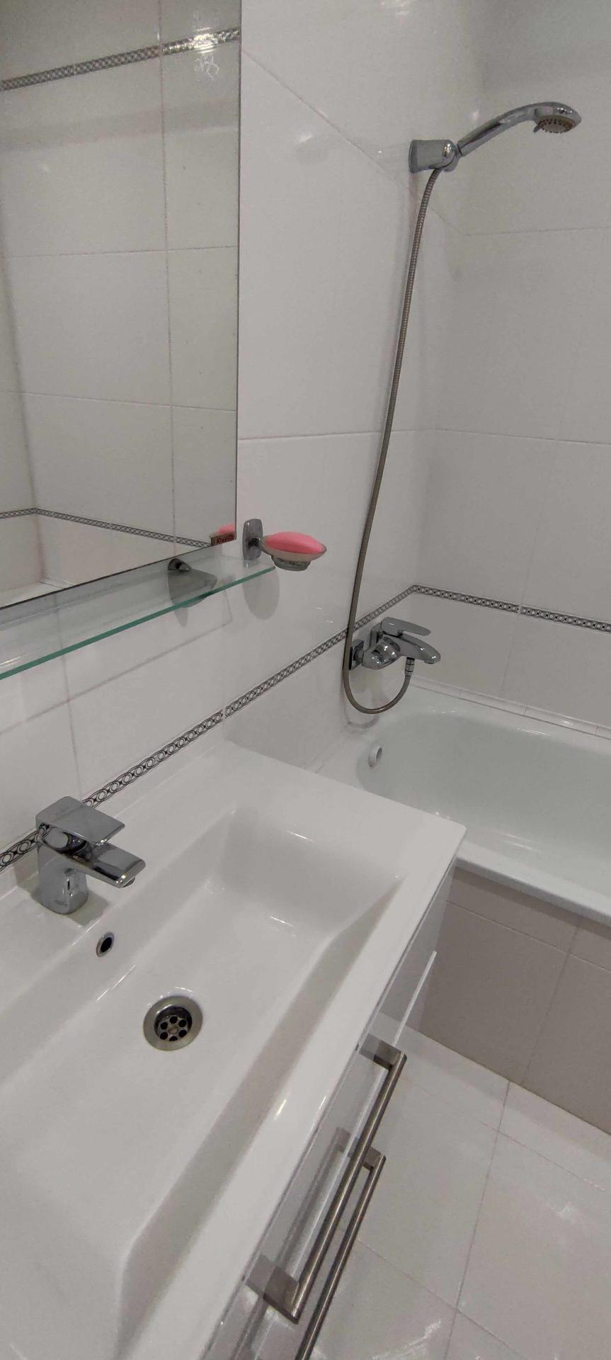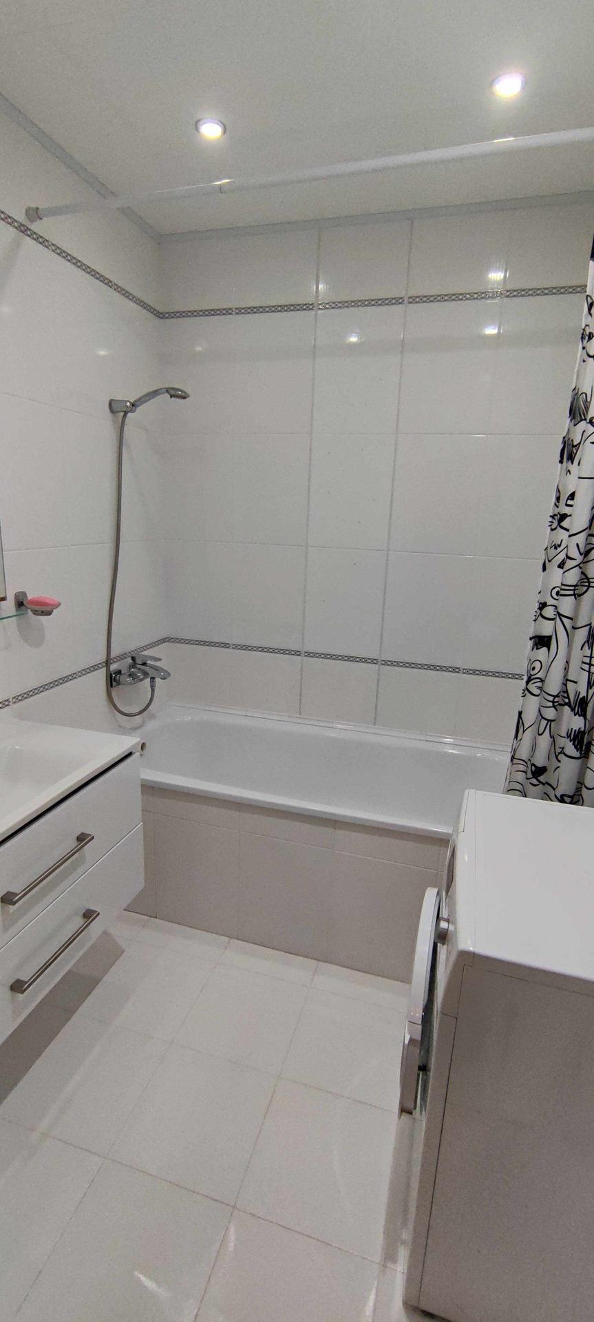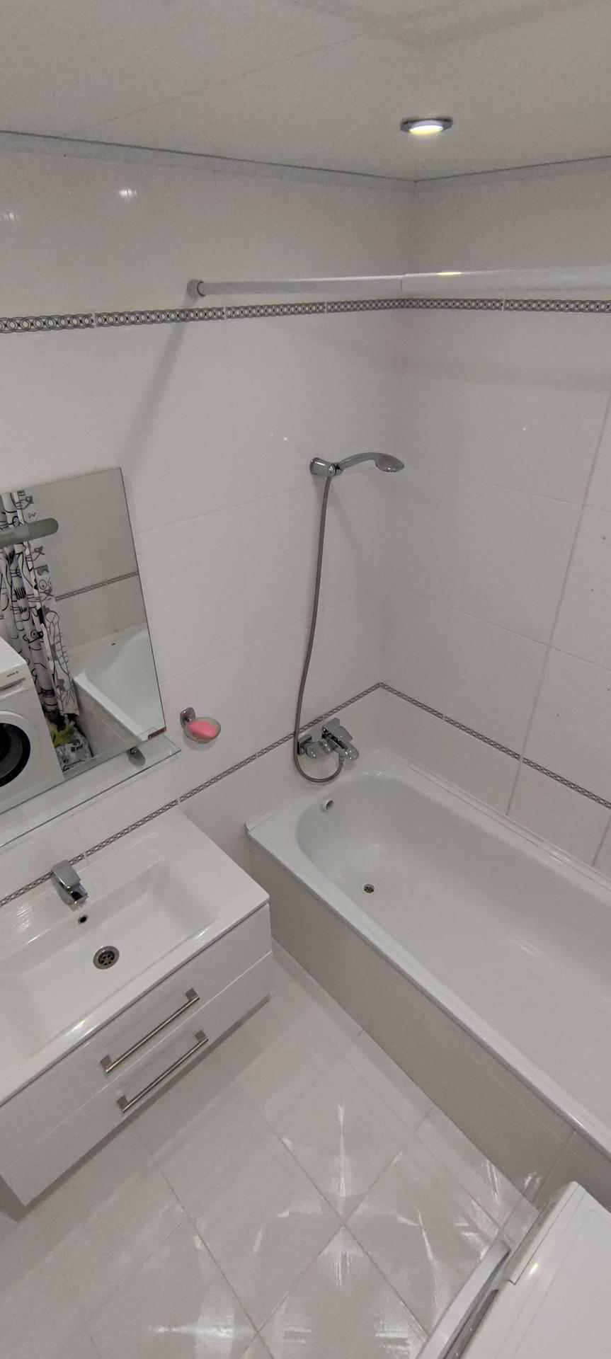 --Ванная комната 3,9 кв.м - стены и пол выложены керамической плиткой , зашита вся коммуникация , установлена качественная сантехника , сушилка , стильная раковина .