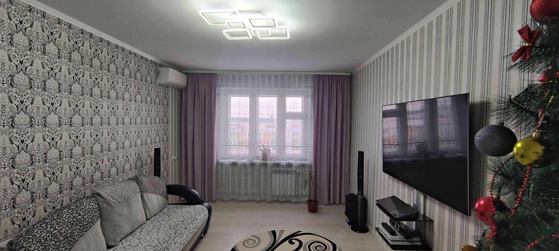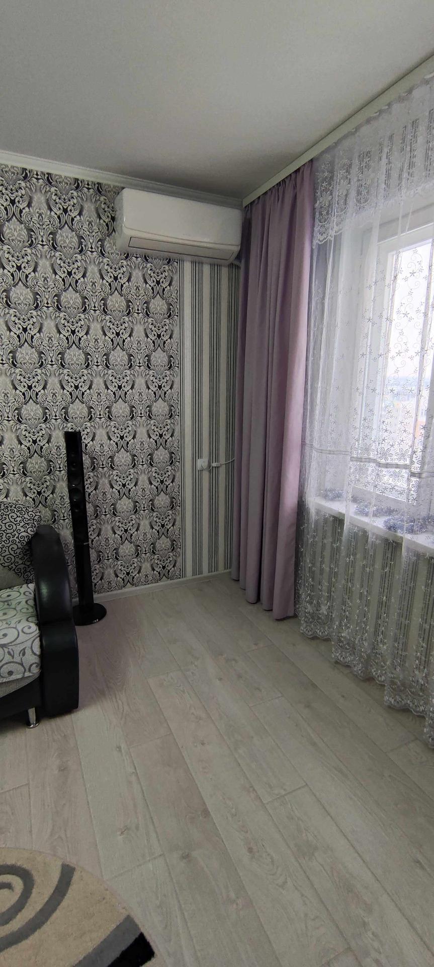 --Зал 19,1 кв.м - выложен ламинат , обои двух расцветок . Остается при покупке - диван раскладной на два спальник места , сплин-система (кондиционер) , шторы.