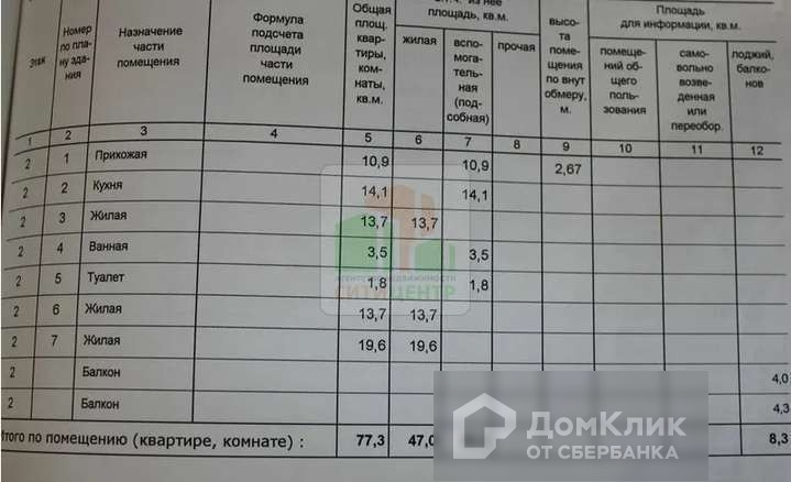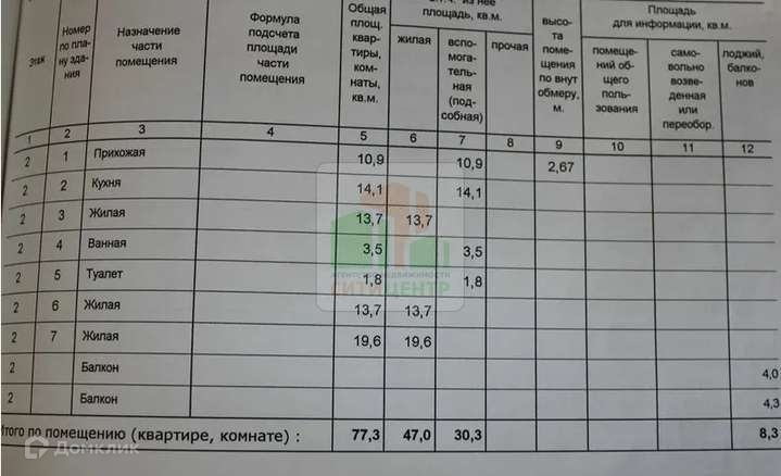 Общая площадь 87.3 м2