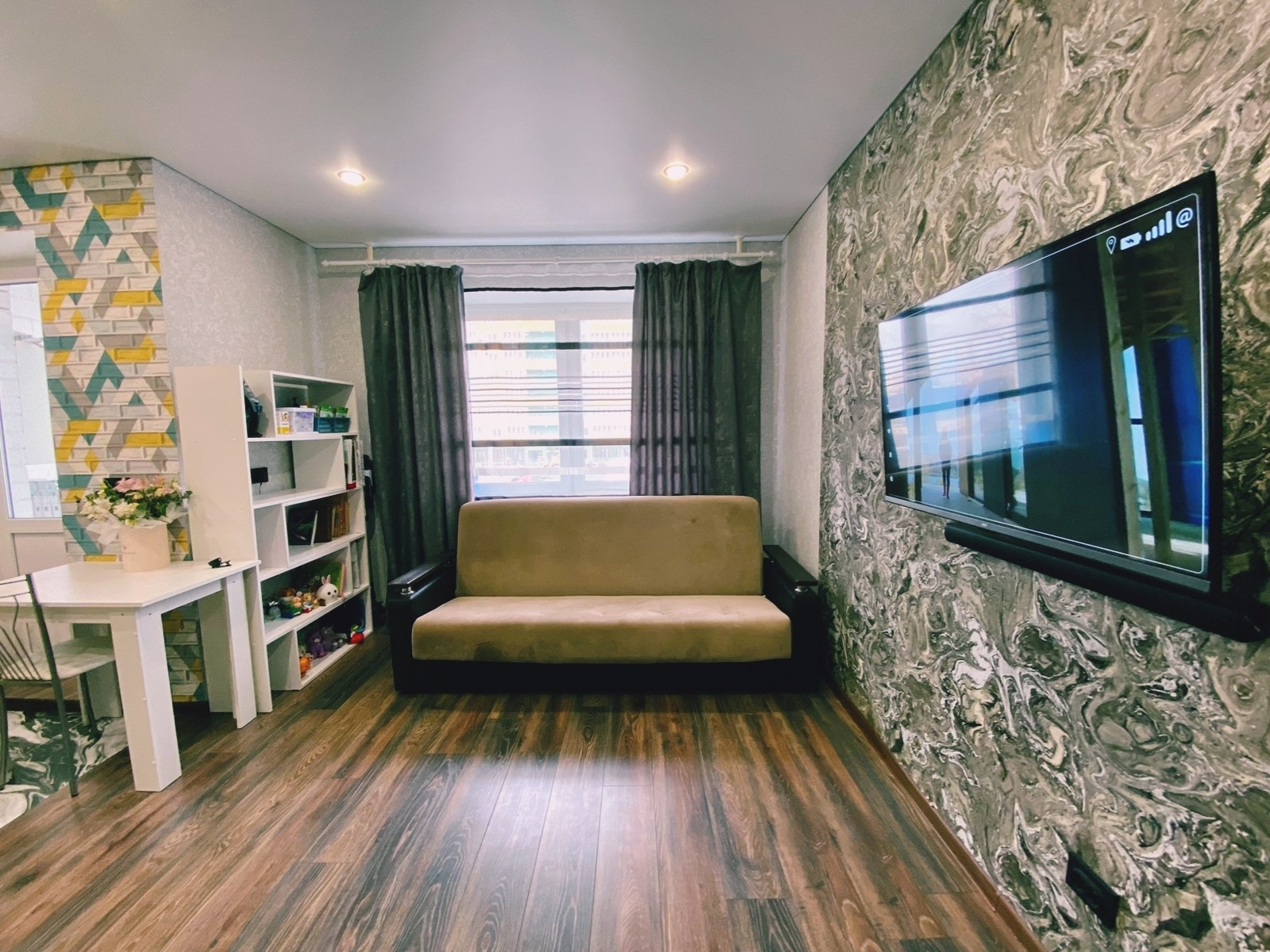 ️️В студии сделан современный качественный ремонт: новые межкомнатные двери, заменена проводка, на полу ламинат, в кухонной зоне керамогранит, дверь сейф, окна ПВХ, радиаторы биметалл