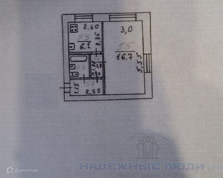 Жилая площадь 16.7 м2