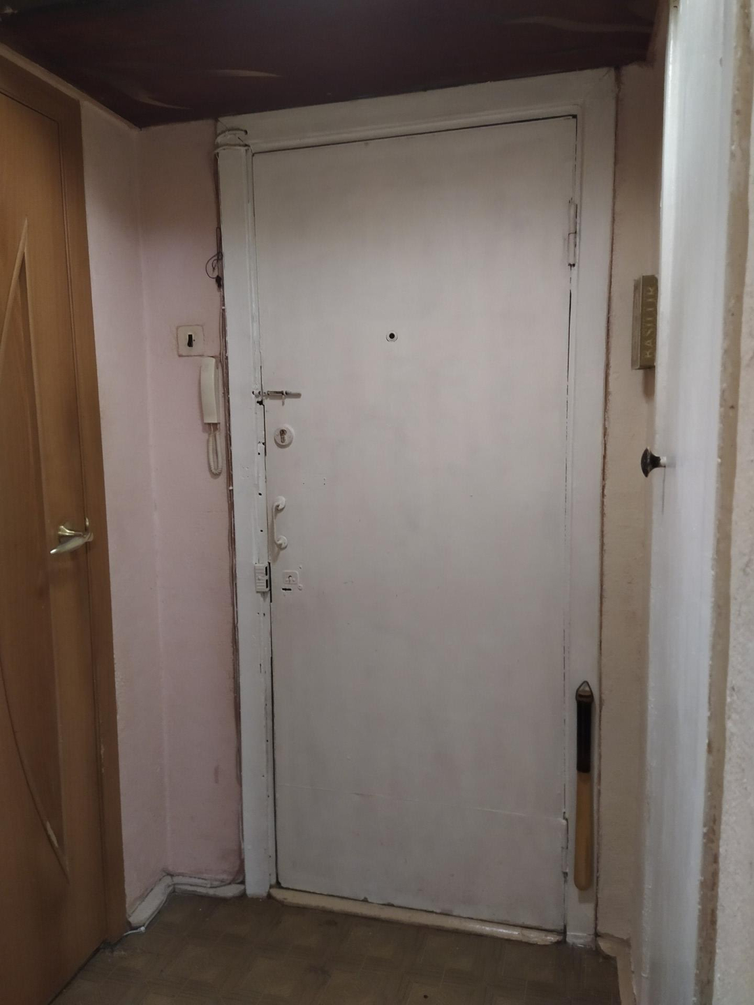 Горячая вода( не колонка). Установлена дверь - сейф.