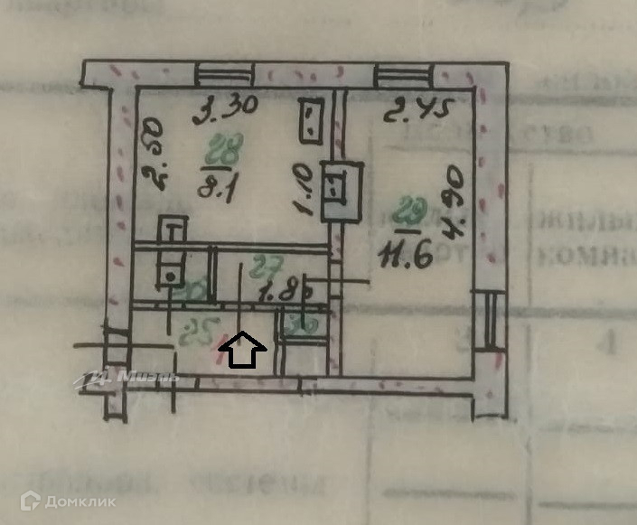 Арт. 41647937 Продам 1-комнатную квартиру в двухэтажном доме 1959 года постройки на 1 этаже.