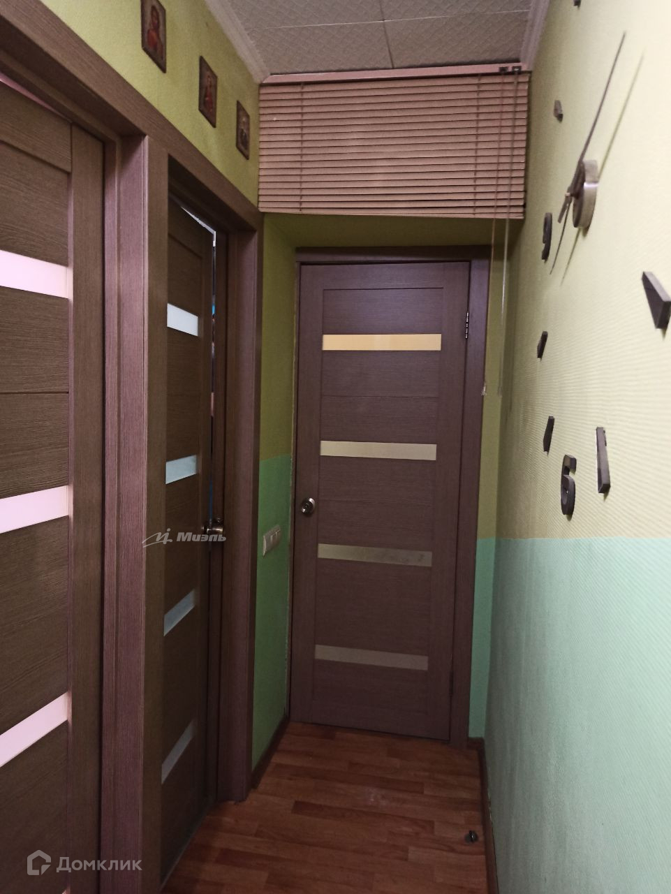 Квартира разделена на две зоны, вход в каждую закрывают красивые двери. В квартире поставлены пластиковые окна. Поклеены обои, аккуратные покрашены потолки акриловой краской, в коридоре и на кухне постелен линолеум, в комнате положен ламинат