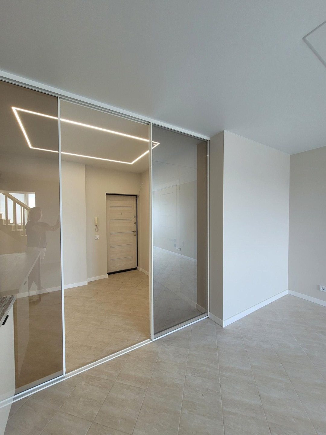 квартира двухуровневая, (два этажа). первый этаж студия, кухня гостинная, холл, гардероб и санузел, второй этаж две большие полноценные спальни (изолированные), одна небольшая комната,  санузел, большой холл и гардеробная. Данная квартира после полного капитального ремонта, с заменой всех коммуникаций, всё абсолютно новое. Новая кухня со встроенной новой бытовой техникой, две сплит системы ( охлаждения воздуха). Абсолютно новые санузлы со всей сантехникой). новые пластиковые окна.