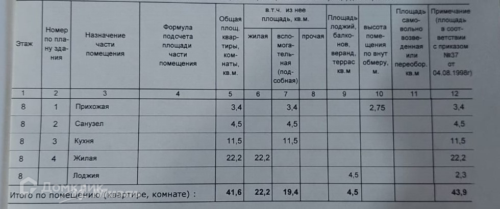 Общая площадь 43.9 м2