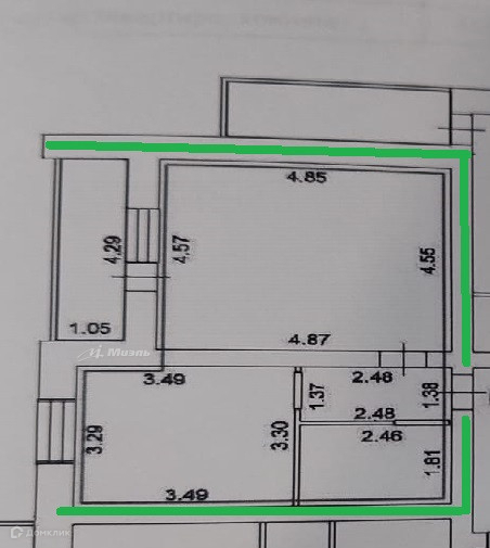 Жилая площадь 22.2 м2