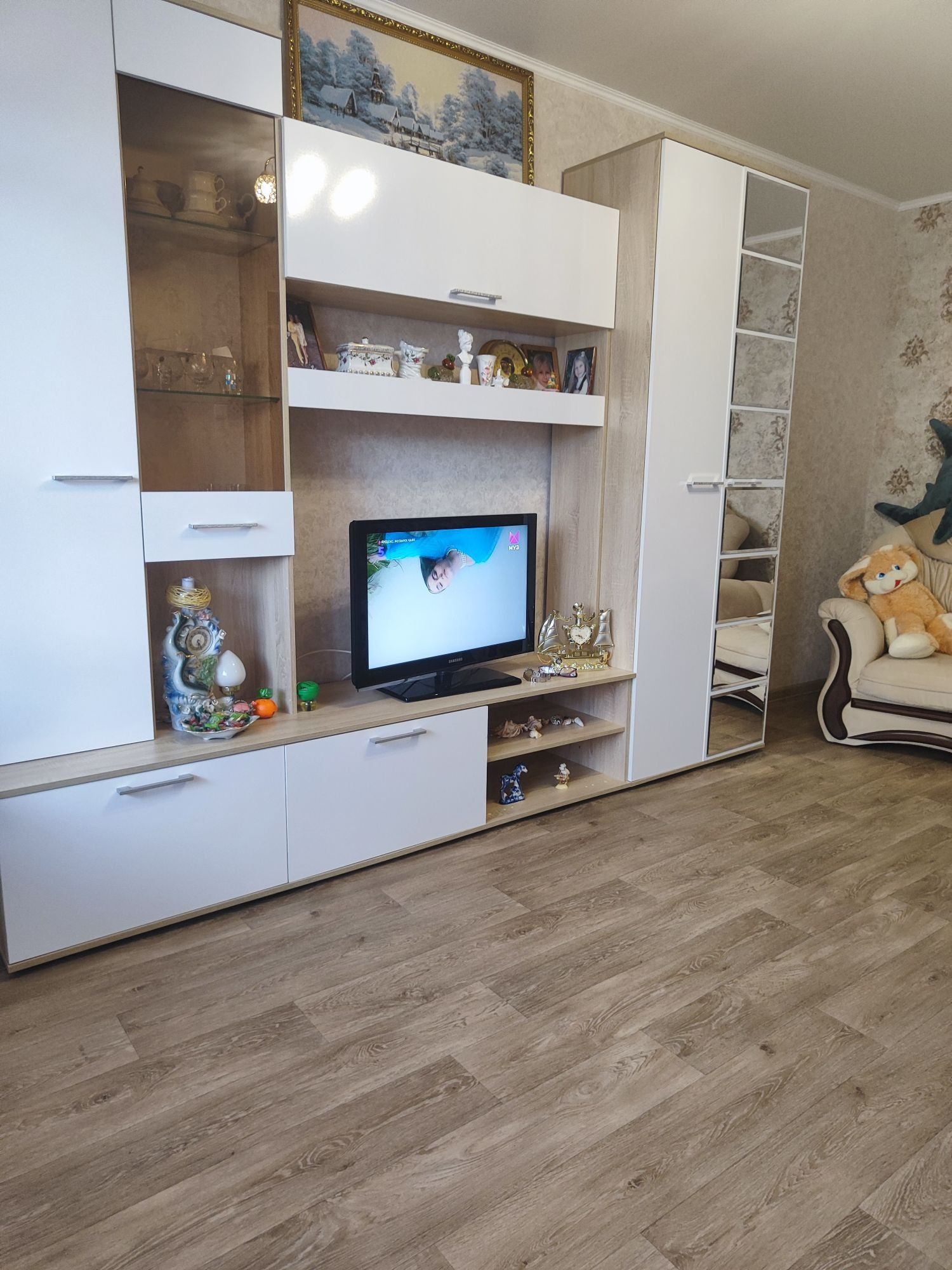 В квартире выполнен качественный свежий ремонт.Натяжной потолок,линолеум,заменены радиаторы и окна ПВХ.Утеплена большая лоджия,входная дверь сейф.С/у выложен качественной кафельной плиткой.Новая сантехника.