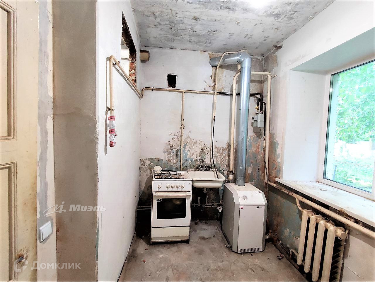 Стены выровнены , готовы под поклейку обоев . Окна ПВХ. Санузел раздельный. Заменены трубы. Установлены все счетчики . Всегда есть горячая вода и отопление ( есть котёл АГВ).