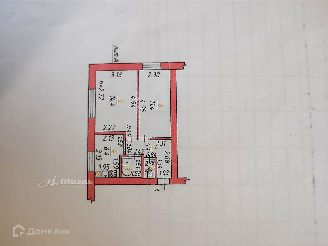Общая площадь 38.6 м2