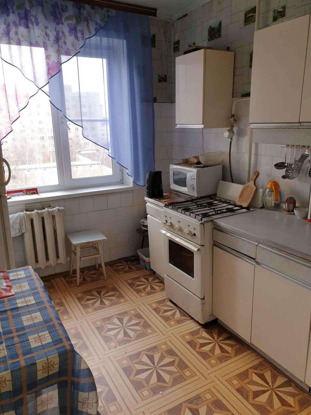 в двух остальных проживает очень хорошая, спокойная, не пьющая пенсионерка с кошечкой.