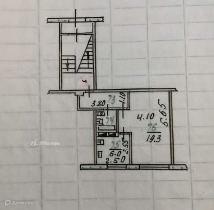 Жилая площадь 19.3 м2