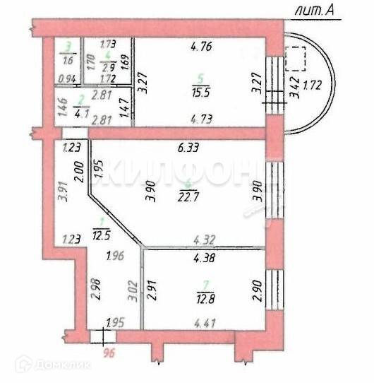 Площадь кухни 12.8 м2