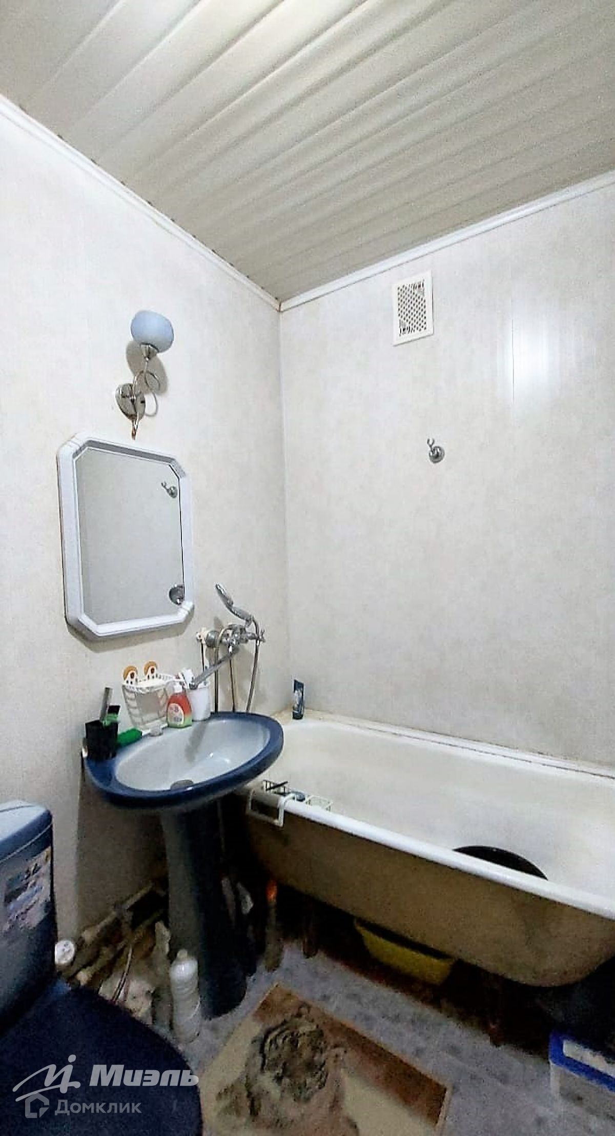Санузел совмещен, на стенах пластиковые панели. На воду установлены счетчики.