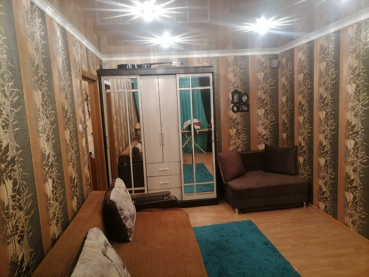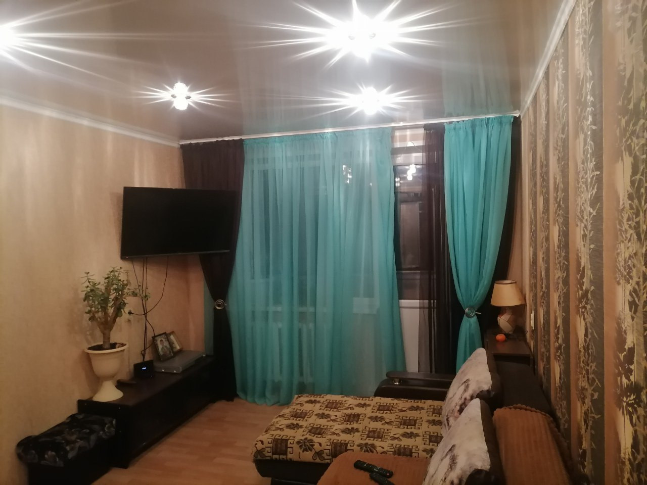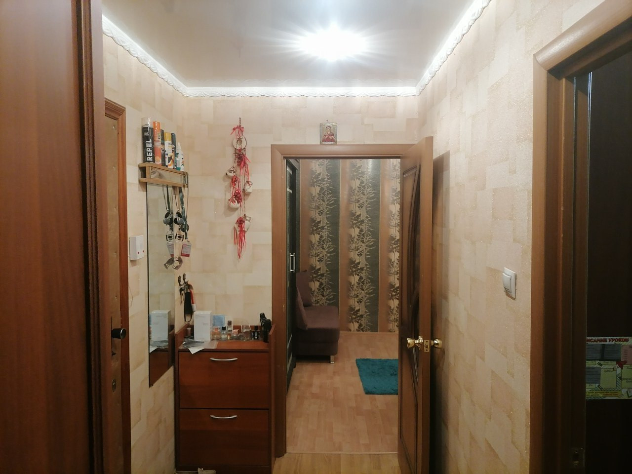В квартире сделан качественный ремонт, используя современные материалы. Натяжные потолки с точечным светом создают уютную атмосферу, а ламинат на полу придает комнатам особый шарм. Санузел также сделан в стиле "модерн", с использованием качественной плитки.