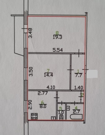 Общая площадь 54 м2