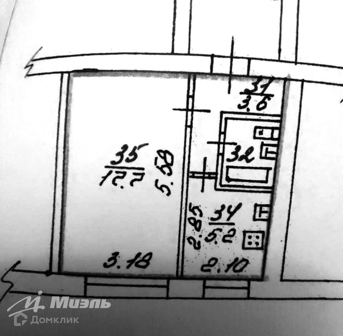 Жилая площадь 17.7 м2