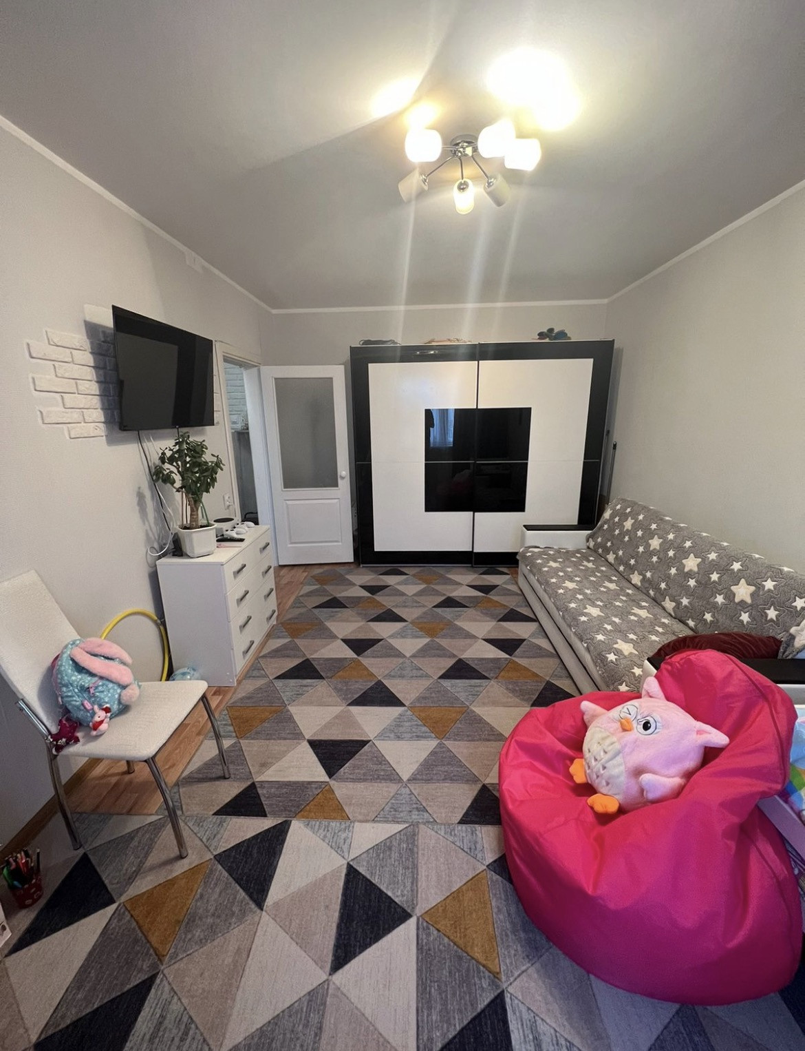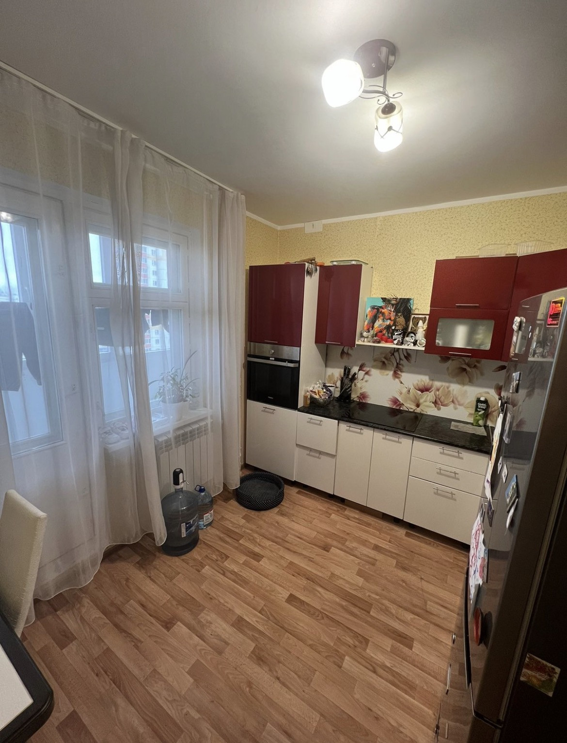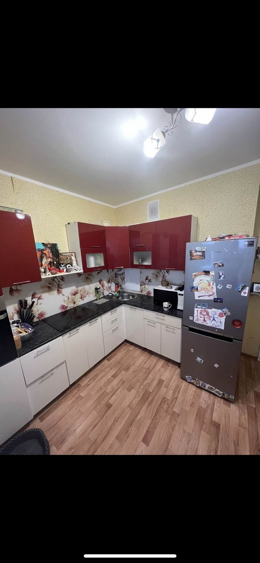 Остается кухонный гарнитур со встраиваемой техникой, в ванной шкафчик, в комнате шкаф купе. Собственник один, обременений нет.