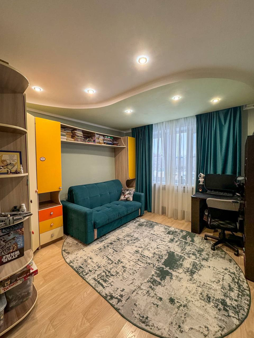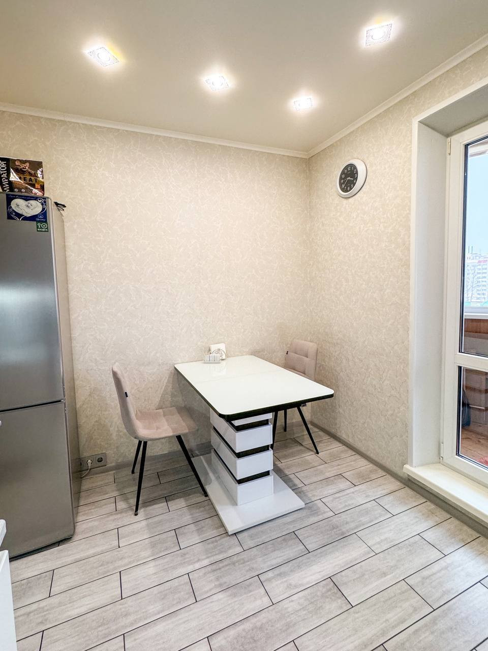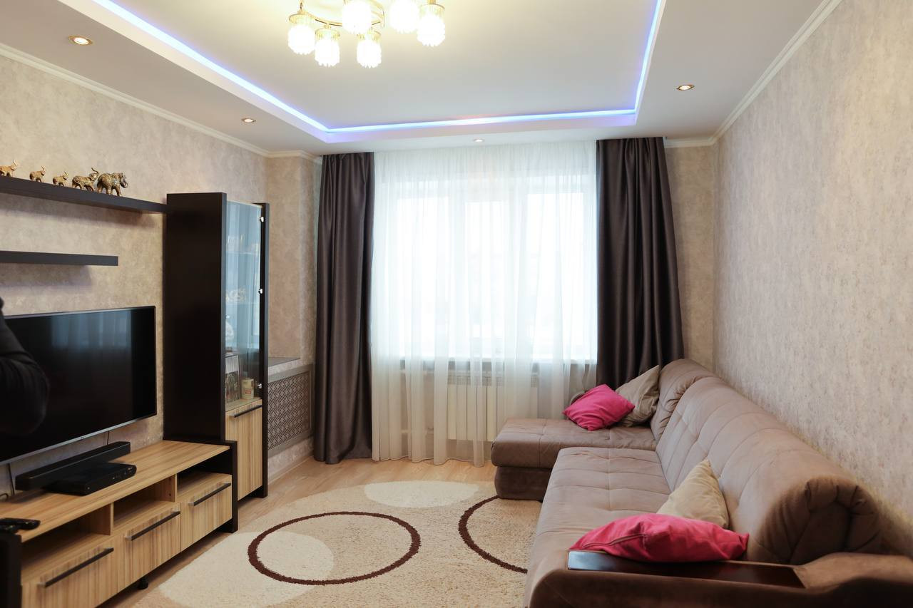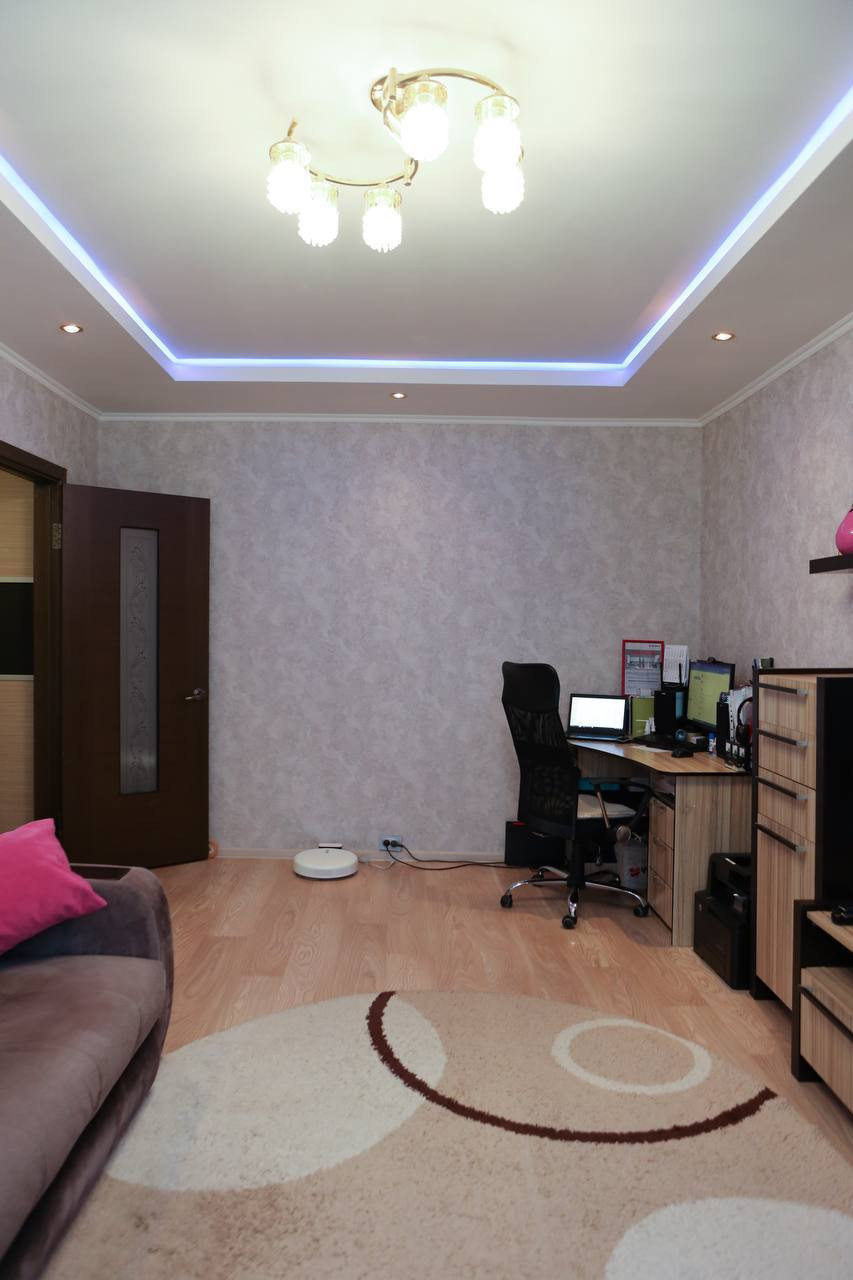 ・Матовые натяжные потолки из дорогого, гипоаллергенного материала - сделаны на кухне, ванной и туалете, в остальных комнатах двух уровневые - гипсокортоновые с диодной подсветкой второго уровня.