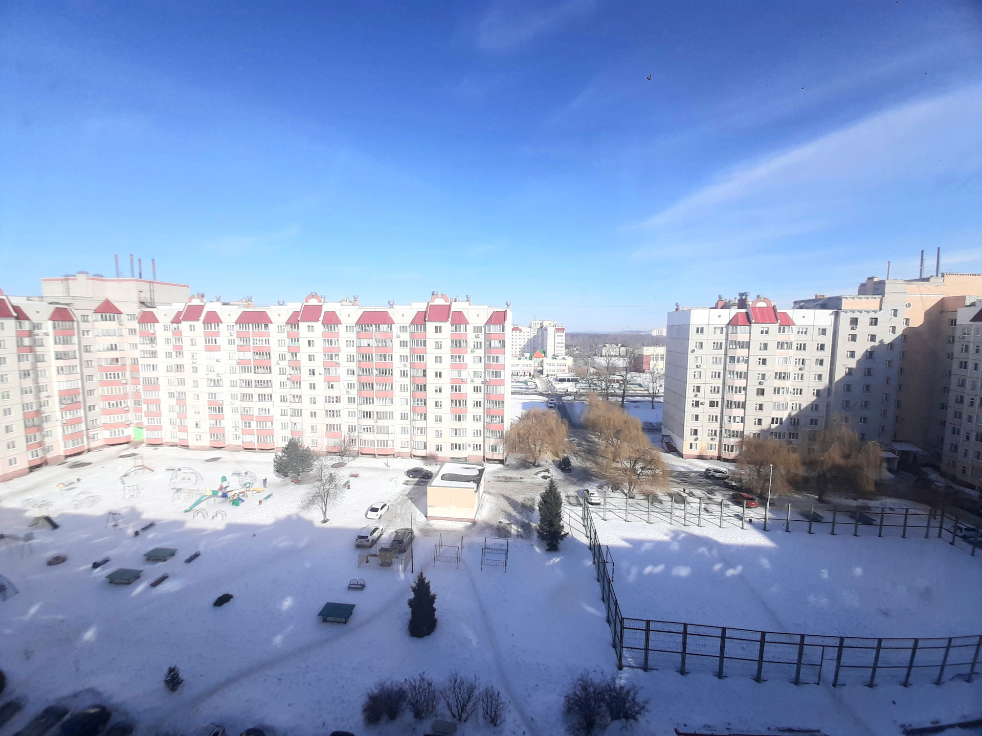 Из окон квартиры прекрасный вид. Видна спортивная и игровая площадка, что очень удобно для семьи с детьми (дети всегда на виду у родителей).