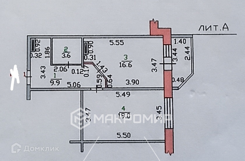 Жилая площадь 38.2 м2