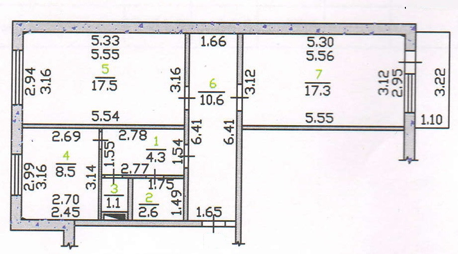 Кухня - 8,5 кв.м., комнаты изолированные - 17,5 и 17,3 кв.м.