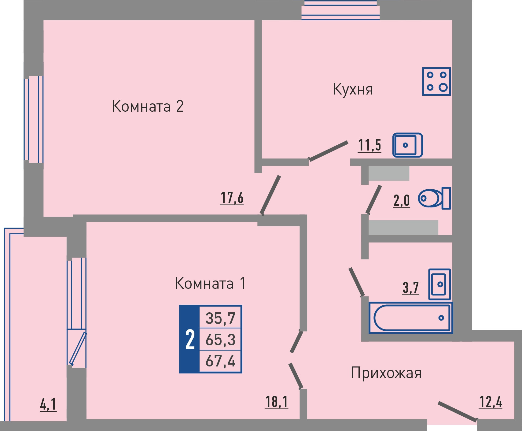 Количество комнат 2