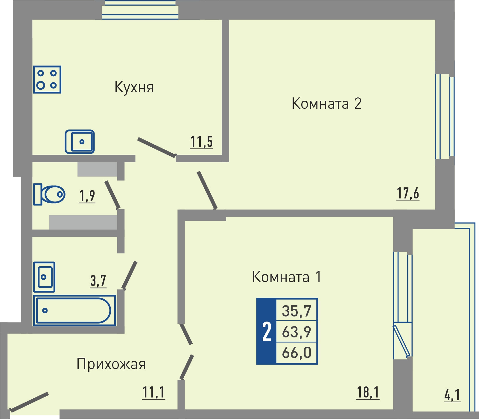 Общая площадь 66.1 м2