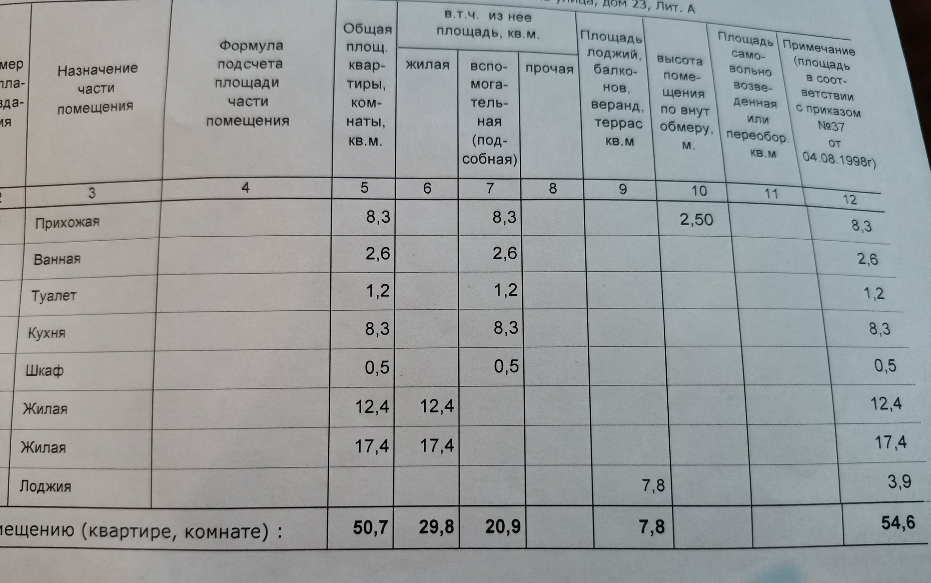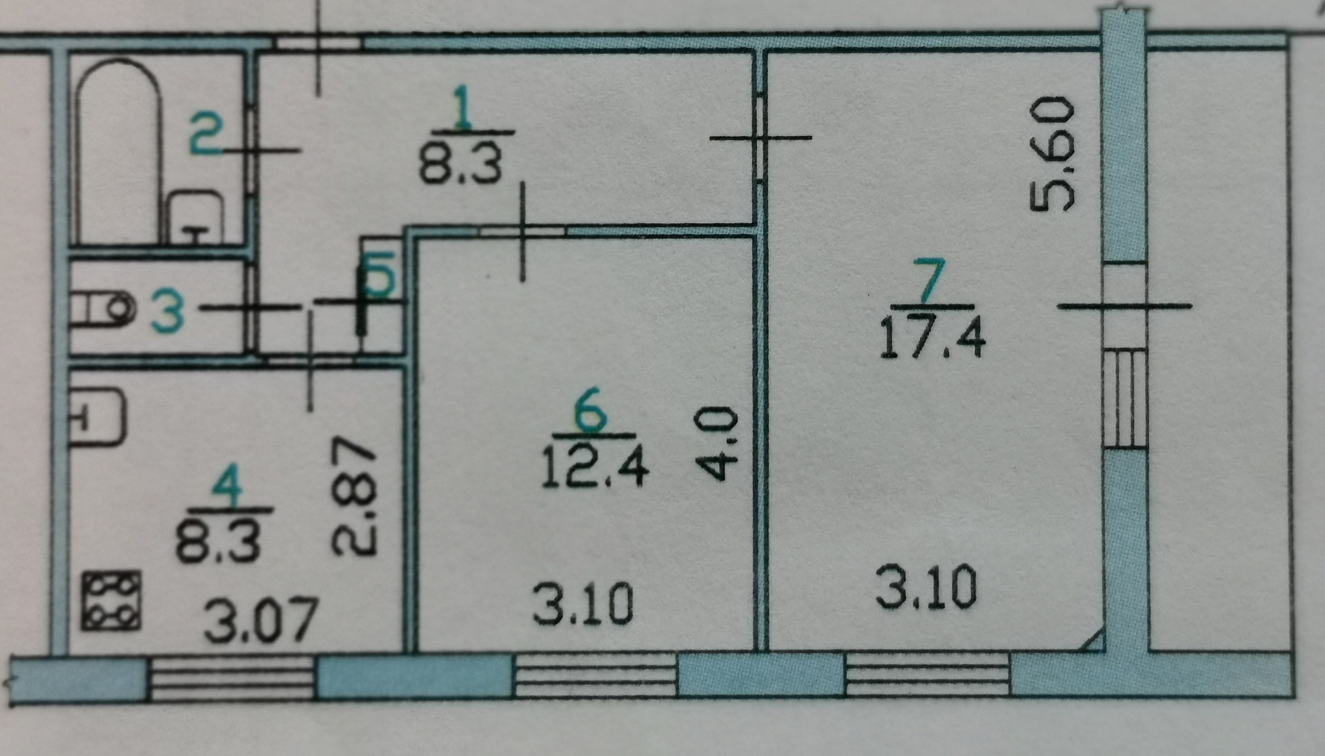 Общая площадь 54.6 м2