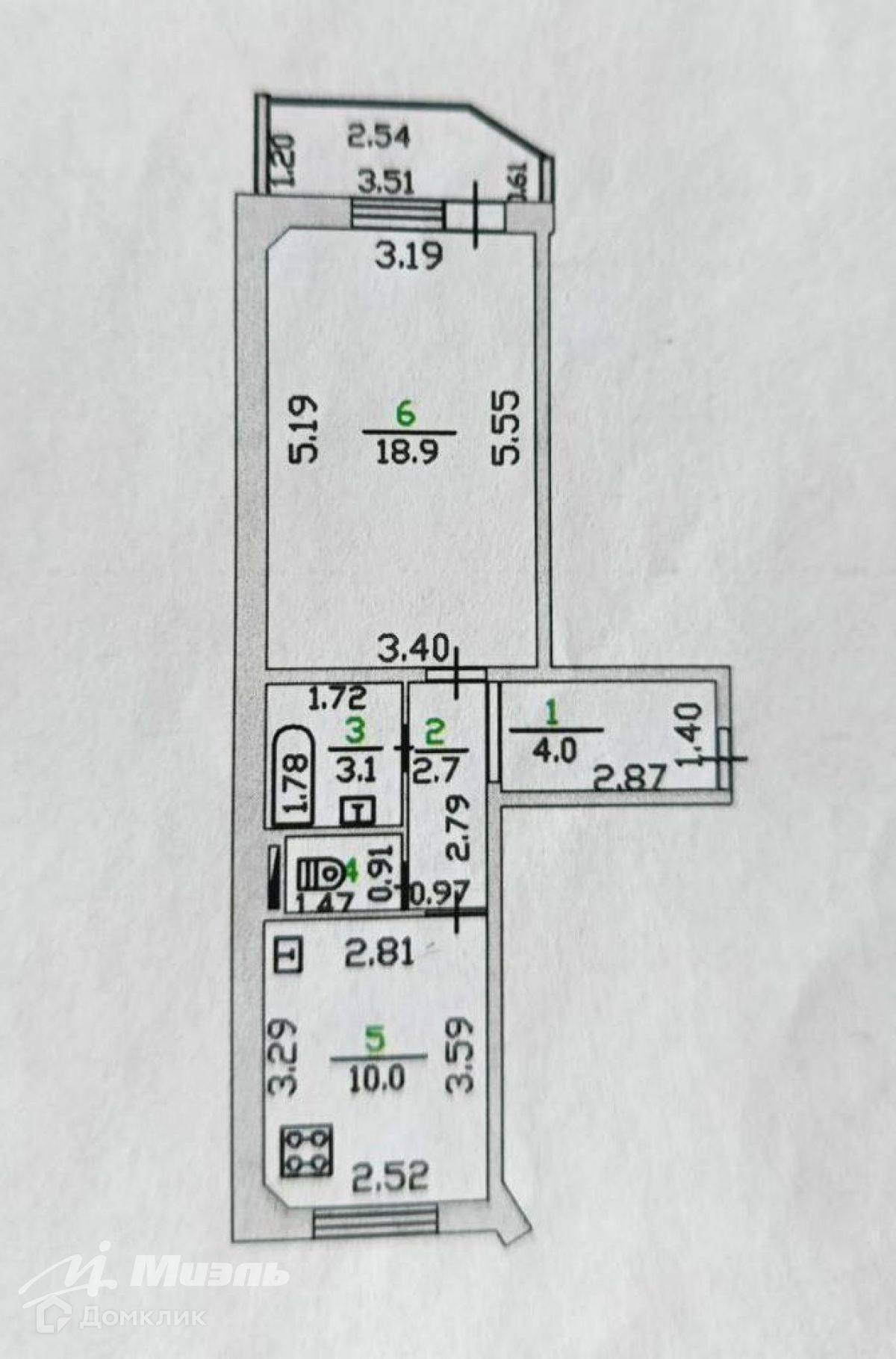 Жилая площадь 18.9 м2