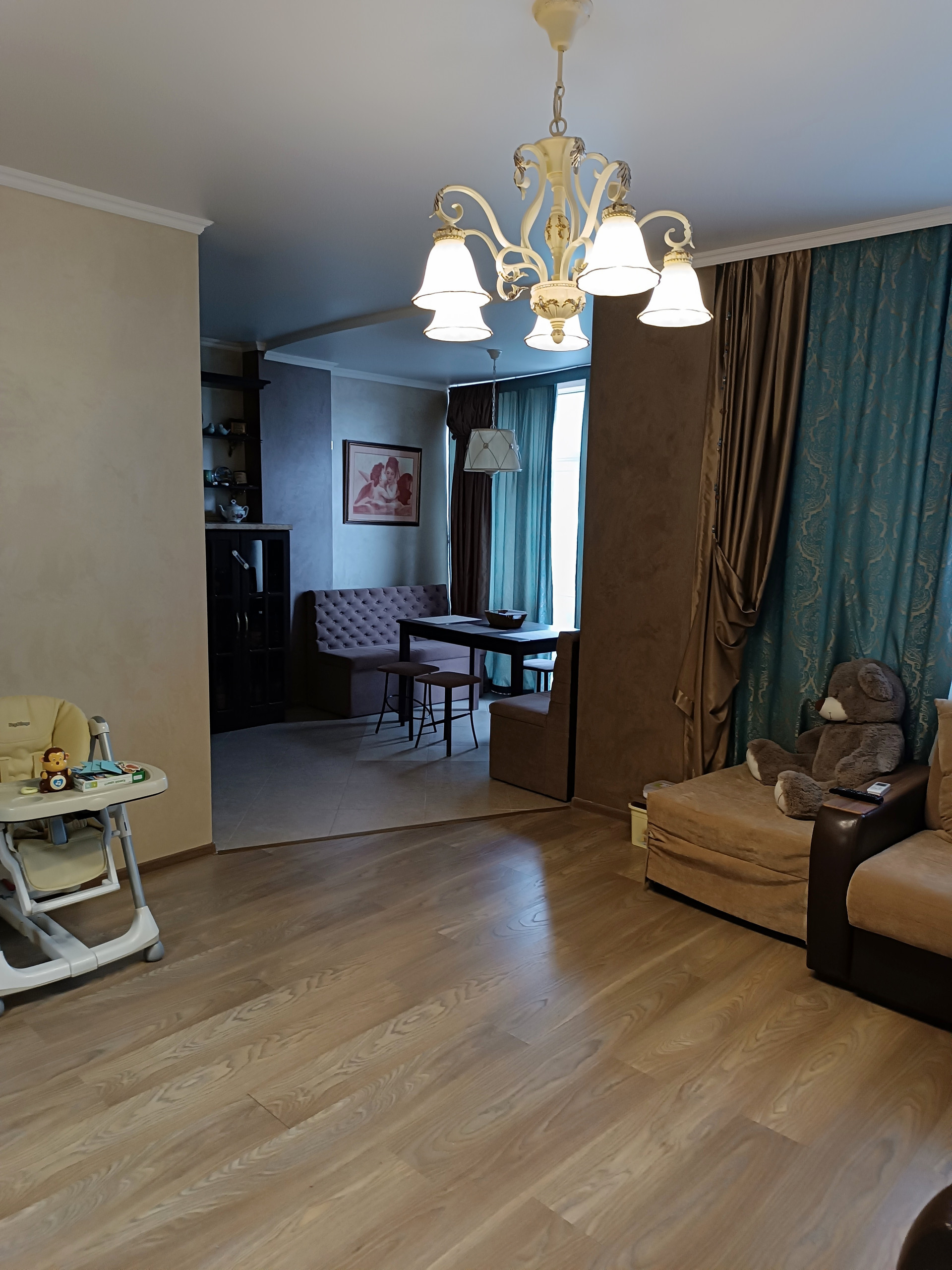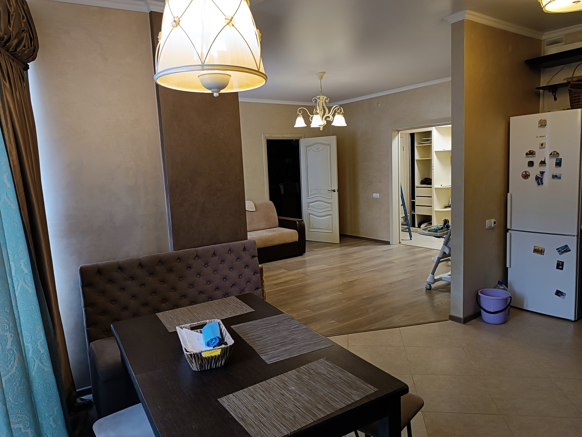 Общая площадь квартиры 67 кв.м.,(кухня-гостиная - 26 кв.м., ванная комната 5,5 кв.м., спальня 14,1 кв.м.), встроенная кухня и мебель входит в стоимость квартиры.