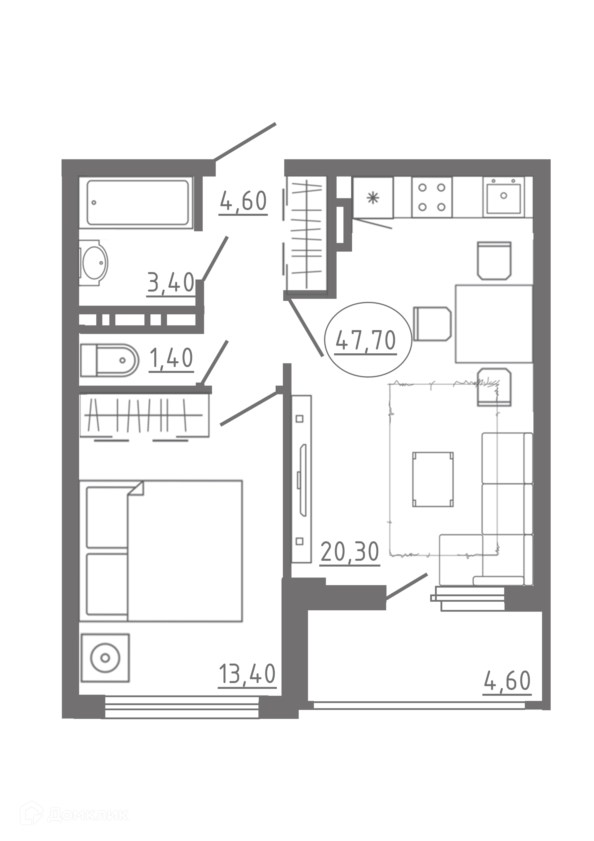 Общая площадь 47.7 м2