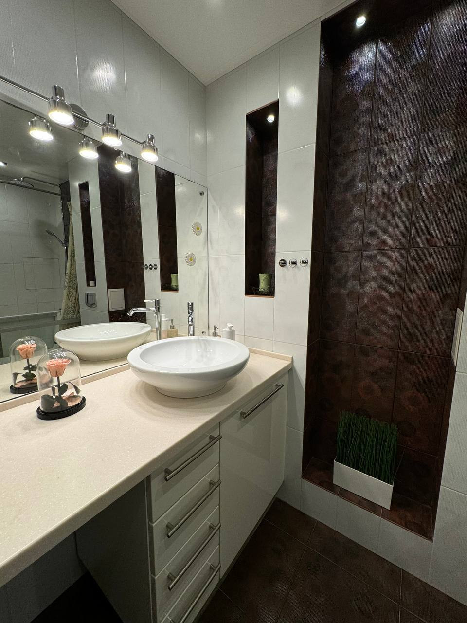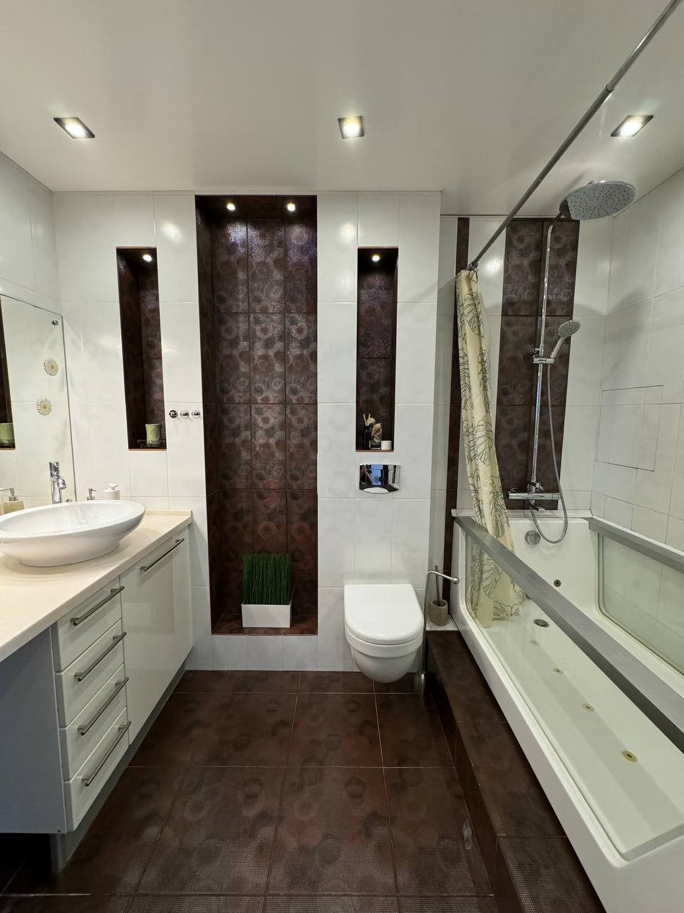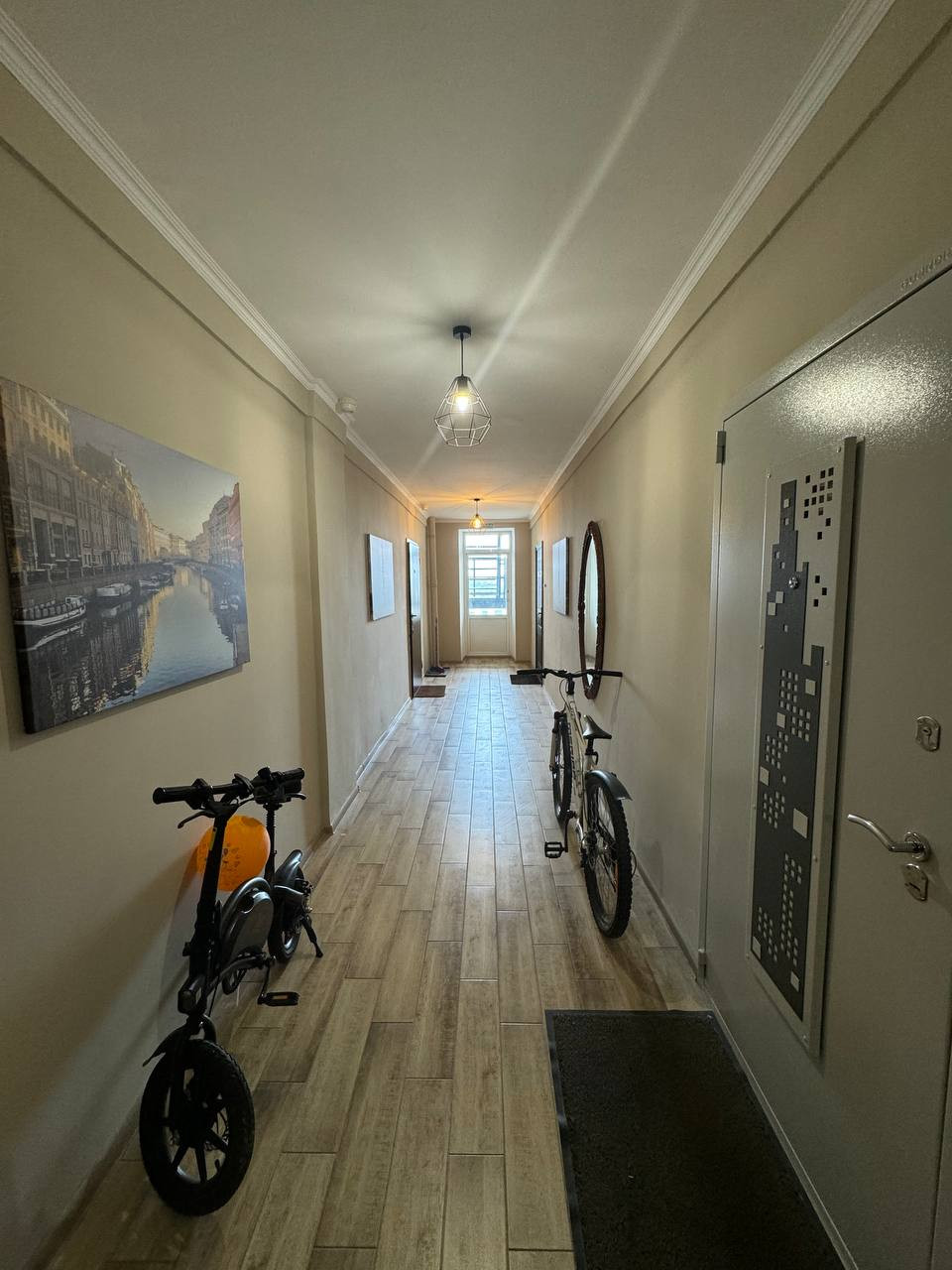 При ремонте использовались только высококачественные строительные материалы: сделана шумоизоляция пола, проложен электрический теплый пол под плиточным покрытием (ванная комната, кухонная зона, прихожая), новая электропроводка, устроена с учётом всех потребностей любой семьи, стояки отопления спрятаны в стену, установлена немецкая сантехника Наnsgrоhе, раковина и унитаз - Villеrоy & Восh, стеклянная ванна фирмы Еаgо. Вся встроенная бытовая техника на кухне премиальной немецкой фирмы Nеff. Итальянская входная дверь Uniоn с отделкой из натурального шпона ольхи, потолки двух-уровневые гипсокартонные с диодной подсветкой второго уровня, напольное покрытие качественный немецкий ламинат, установлен кондиционер.