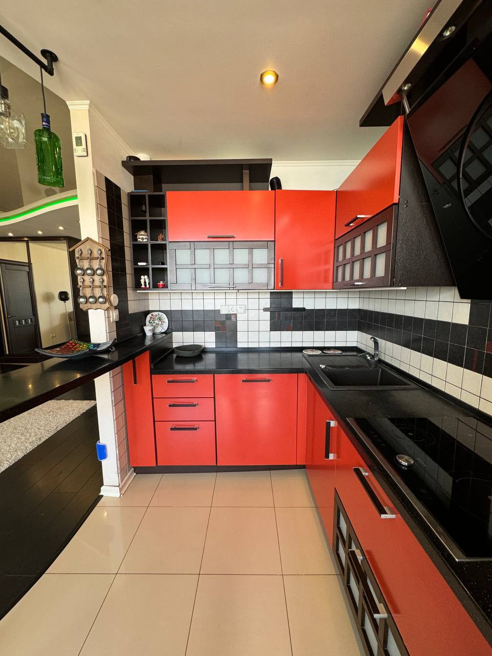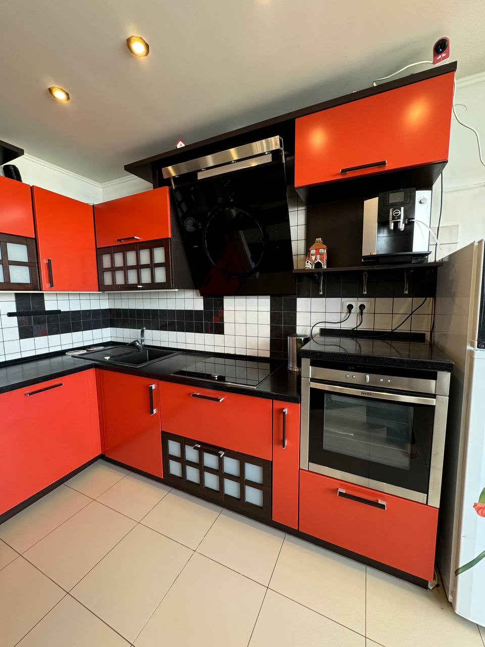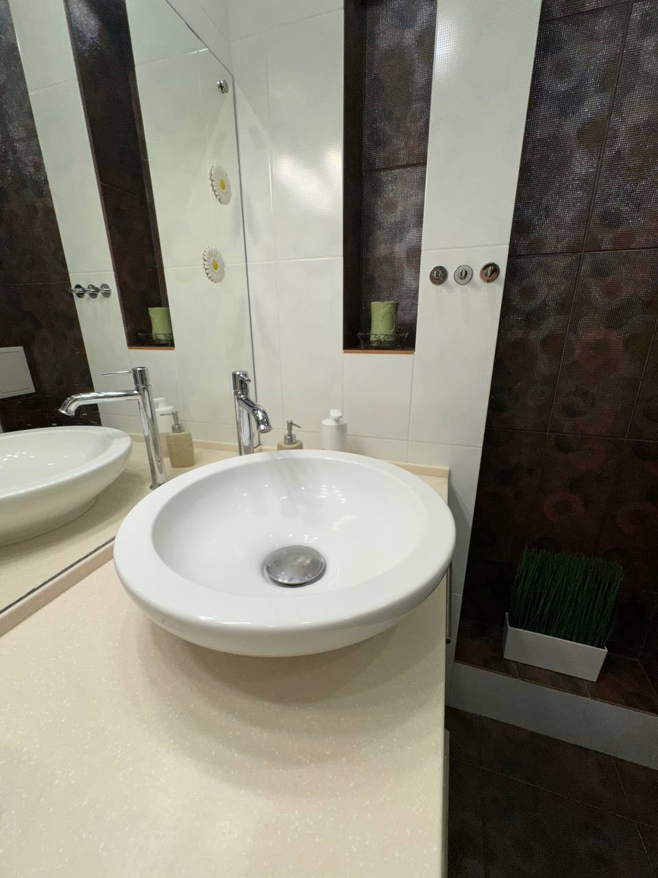 При ремонте использовались только высококачественные строительные материалы: сделана шумоизоляция пола, проложен электрический теплый пол под плиточным покрытием (ванная комната, кухонная зона, прихожая), новая электропроводка, устроена с учётом всех потребностей любой семьи, стояки отопления спрятаны в стену, установлена немецкая сантехника Наnsgrоhе, раковина и унитаз - Villеrоy & Восh, стеклянная ванна фирмы Еаgо. Вся встроенная бытовая техника на кухне премиальной немецкой фирмы Nеff. Итальянская входная дверь Uniоn с отделкой из натурального шпона ольхи, потолки двух-уровневые гипсокартонные с диодной подсветкой второго уровня, напольное покрытие качественный немецкий ламинат, установлен кондиционер.